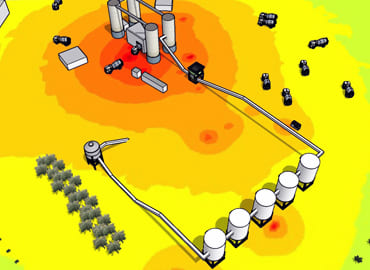 dBAS Soluciones Acústicas realiza mapas de ruido a través de su software predictivo para propagación y modelamiento, ya sea desde fuentes de ruido puntuales, multipuntuales, fuentes lineales, muros, encierros y edificios.